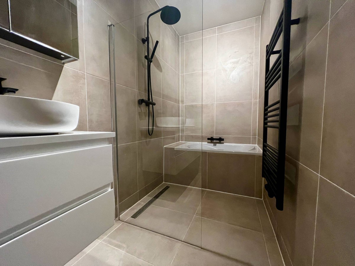 De studio is circa 16 m², volledig ingericht in een luxe en trendy stijl, en beschikt over een eigen kitchenette, een tweepersoonsbed, een studeerhoek en een eigen badkamer met bad en aparte douche.