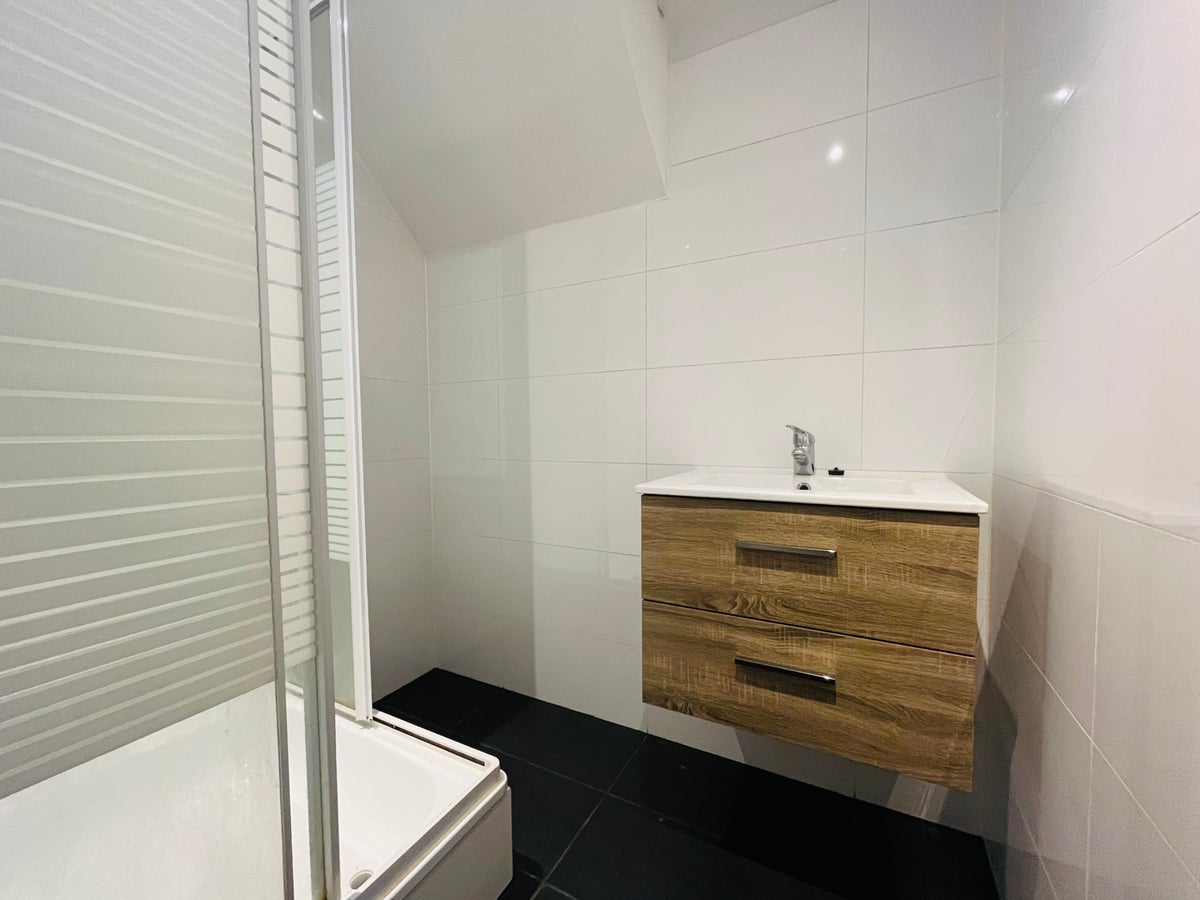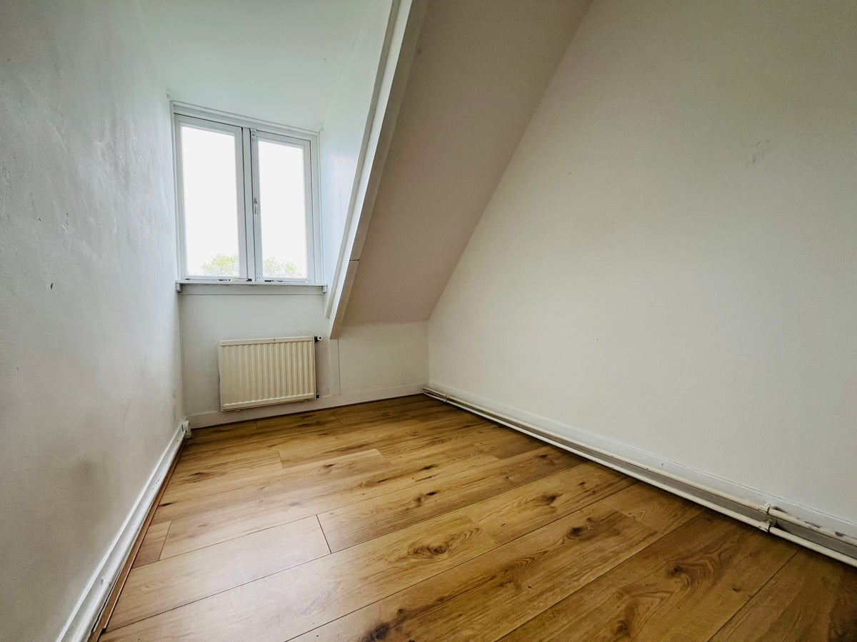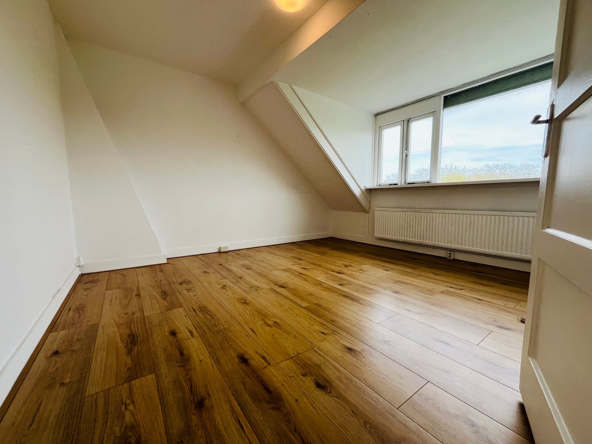 Het appartement telt twee slaapkamers van respectievelijk circa 11 m² en 6 m². De badkamer is voorzien van een douche en een wastafel. Het toilet is gedeeld. Via een interne trap bereikt u de zolderetage van circa 17 m², welke extra gebruiksruimte biedt en waar zich tevens de aansluiting voor de wasmachine bevindt.