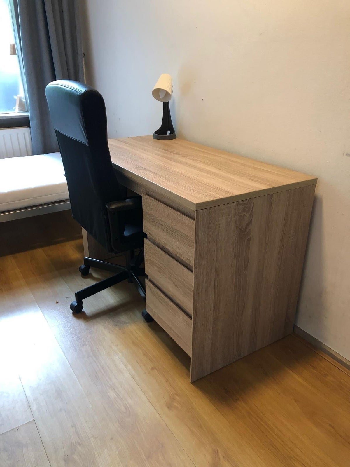 Huurders delen twee badkamers, twee toiletten, de keuken en de achtertuin. De meubilering van de kamer bestaat uit een bureau met bureaustoel, een kledingkast en een eenpersoonsbed.