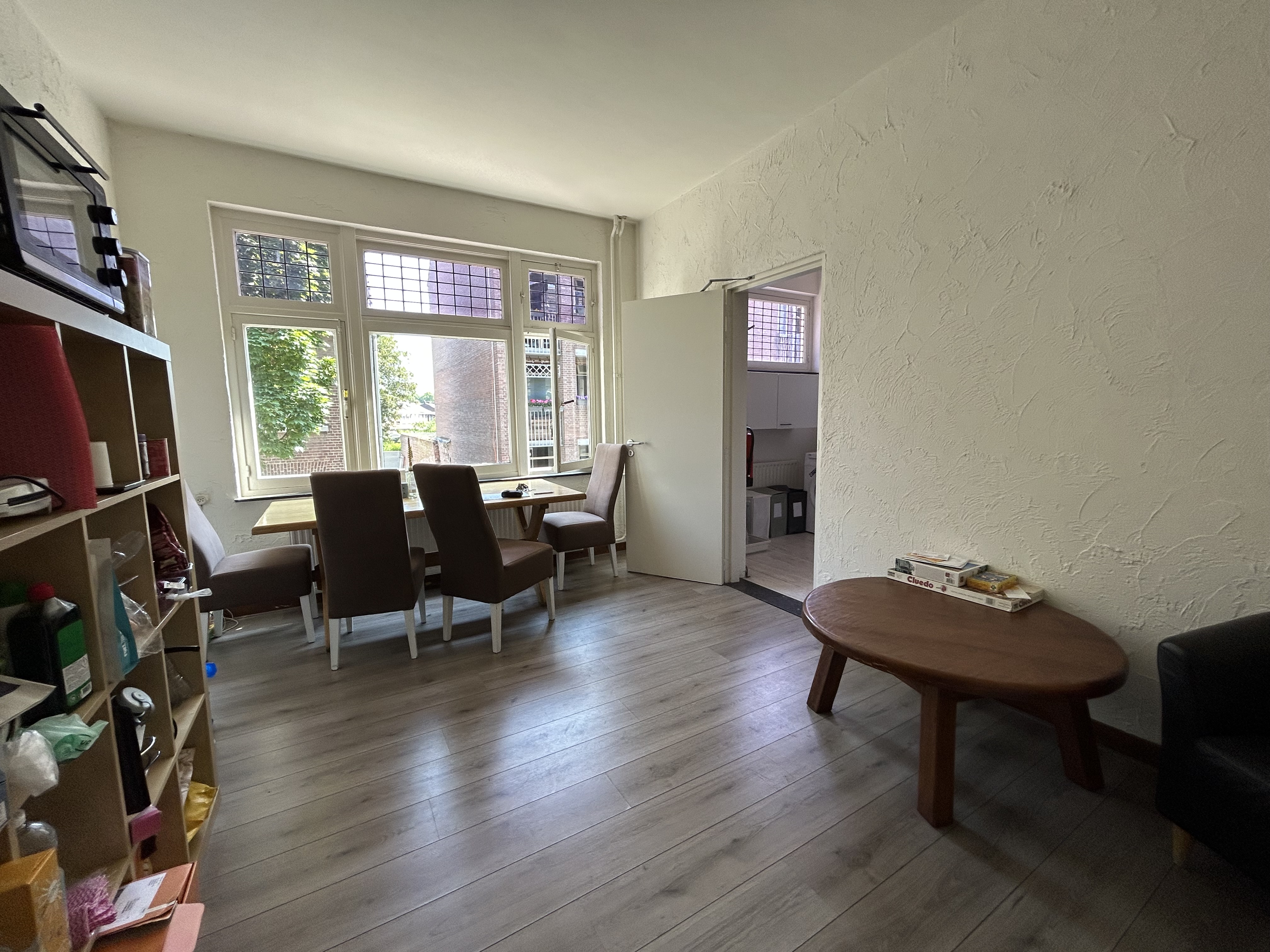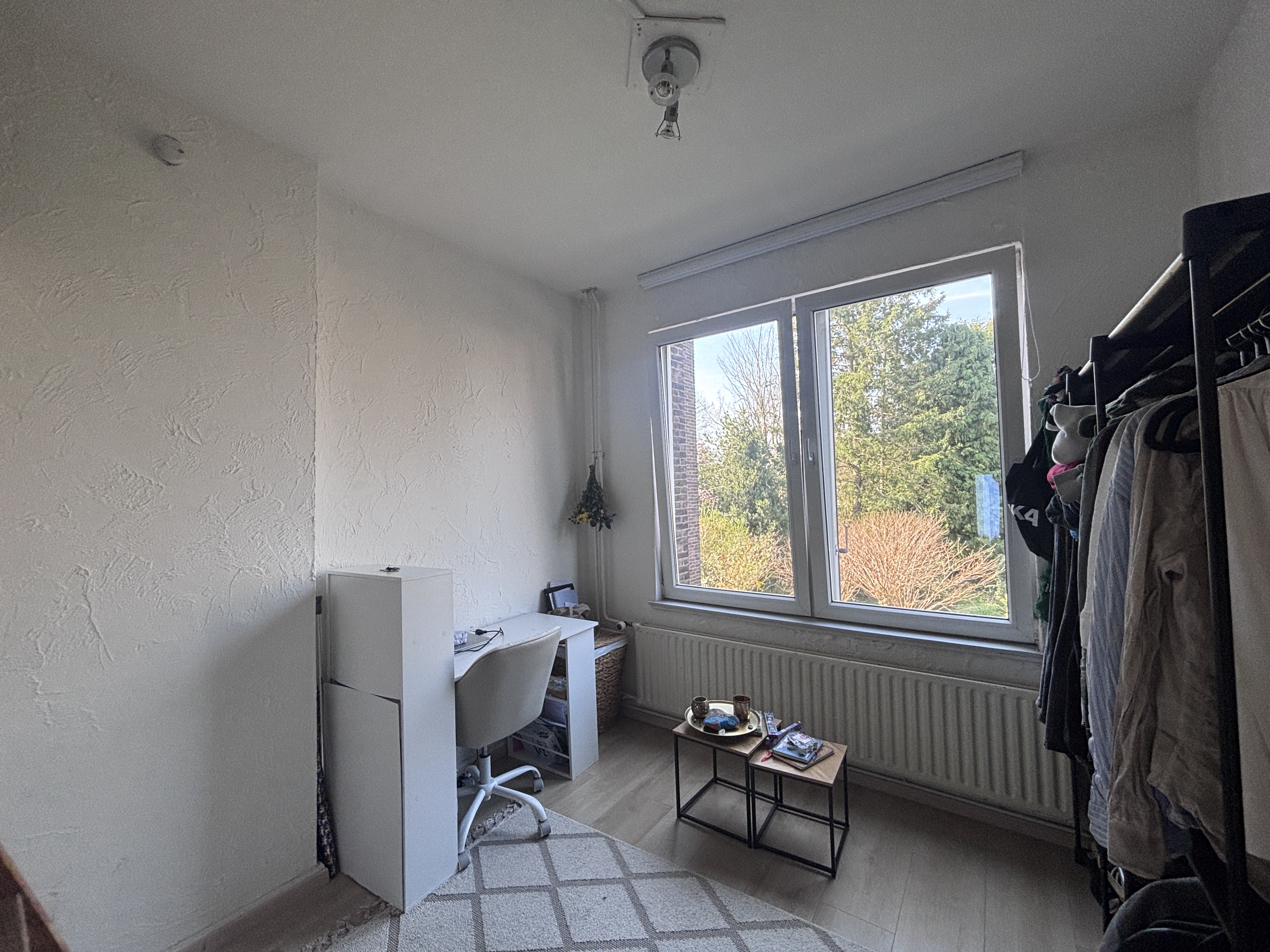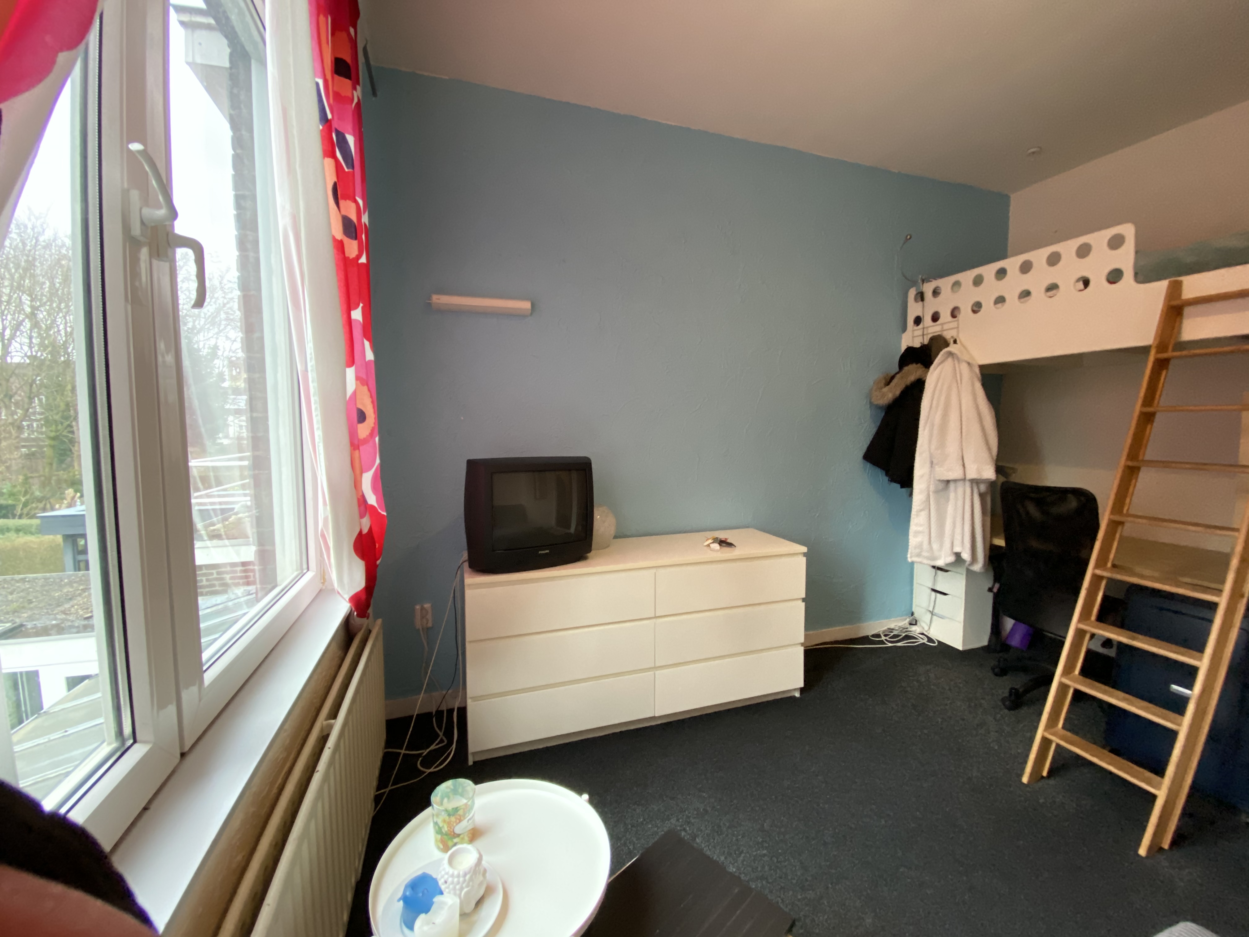 Nette ruime kamer op eerste verdieping in een studentenhuis aan de Eburonenweg, enkel 5 minuten fietsafstand van het station.