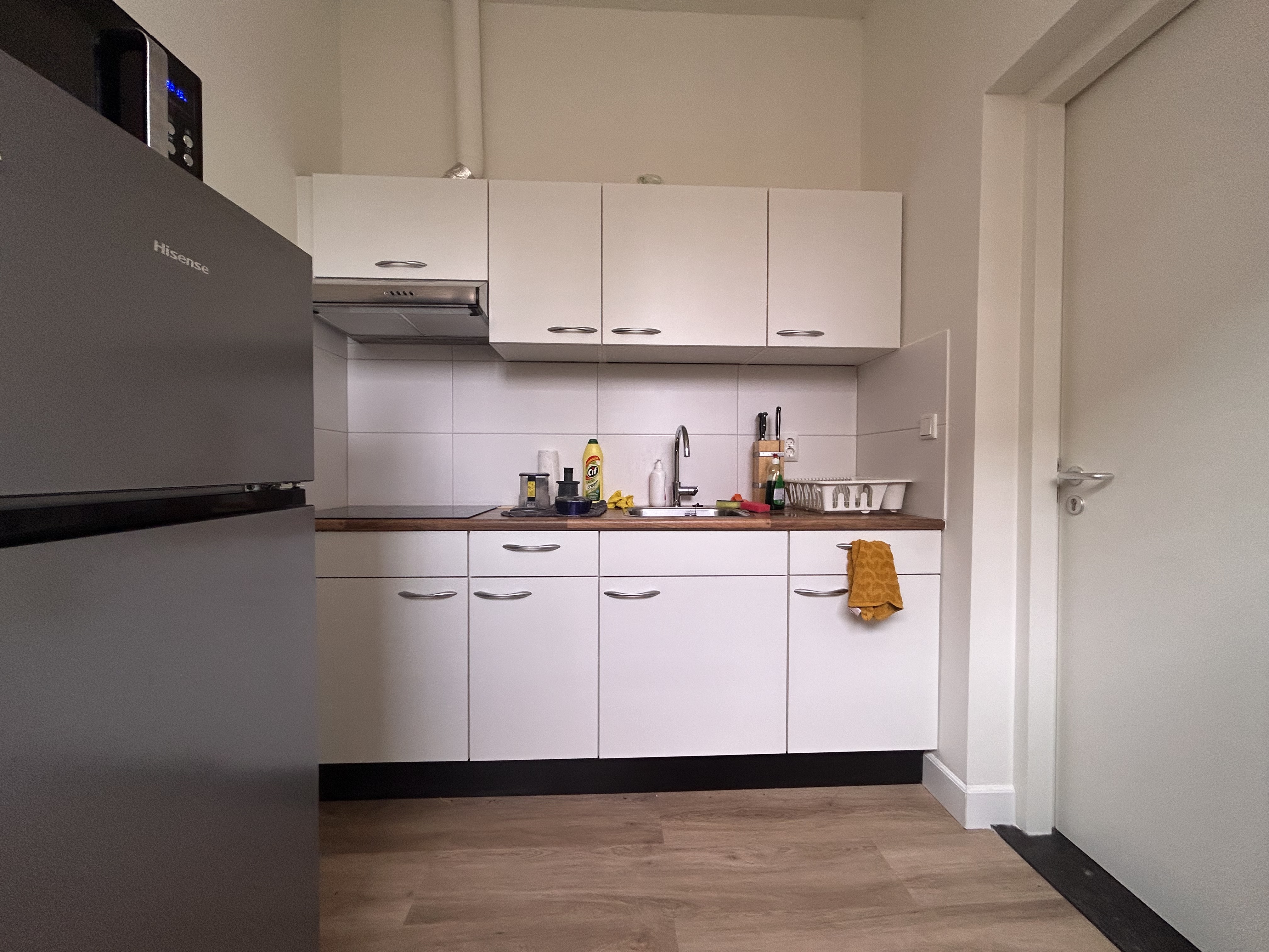 Op de eerste etage bevindt zich de kamer en gezamenlijke keuken & woonkamer en 2 kamers.