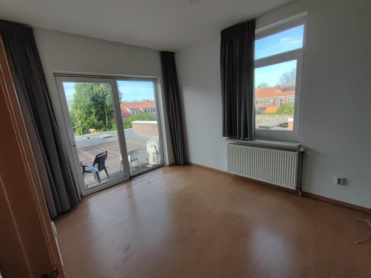 Het is zo'n 11 vierkante meter met uitzicht op de Hengelose straat en ons dakterras.