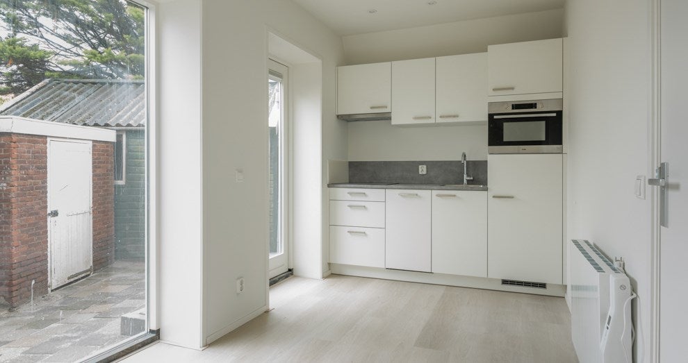 Dit appartement is gesitueerd op begane grond aan de achterzijde van het gebouw.