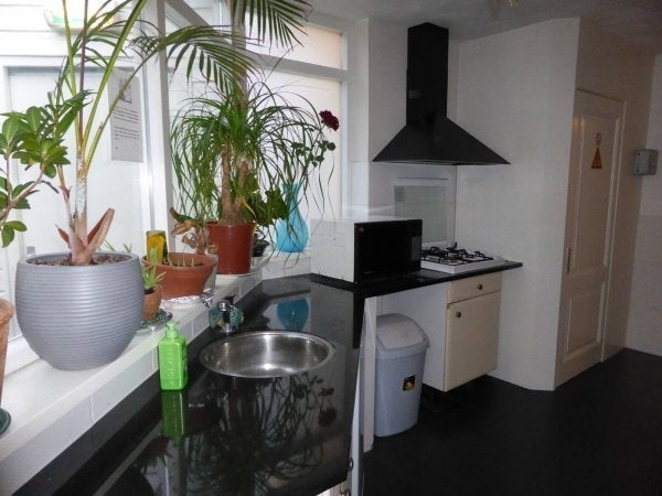 Indeling: entree, woonkamer/slaapkamer, gedeelde badkamer met toilet en douche, gedeelde keuken . 4 pit, afzuigkap.