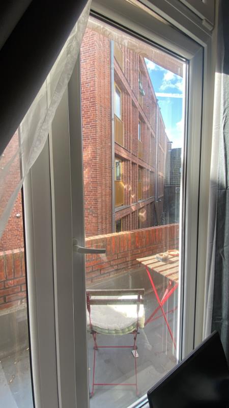 The area offers convenient access to supermarkets, the UMCG bus stop, and the city center, all within walking distance. The room features a private balcony, and some essential furniture pieces are available for purchase at a fixed price of 200 euros. This includes a double bed ( cm), a desk, a chair, a TV table, and a wooden shelf. The room measures 8 square meters and is equipped with laminate flooring and blackout curtains.