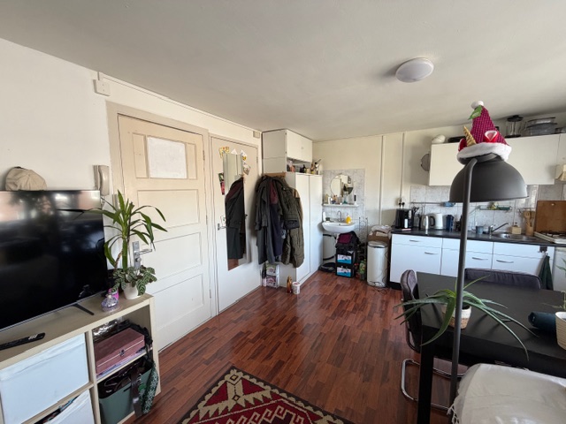 De Studio is gelegen op de 2e verdieping van het pand. De oppervlakte van de studio is 20 m2 en in de studio vind je een keuken en een douche en toilet voor privégebruik. Let op, dit pand is niet geschikt voor huurtoeslag! Op de 1e verdieping vind je de wasmachine voor gezamenlijk gebruik.