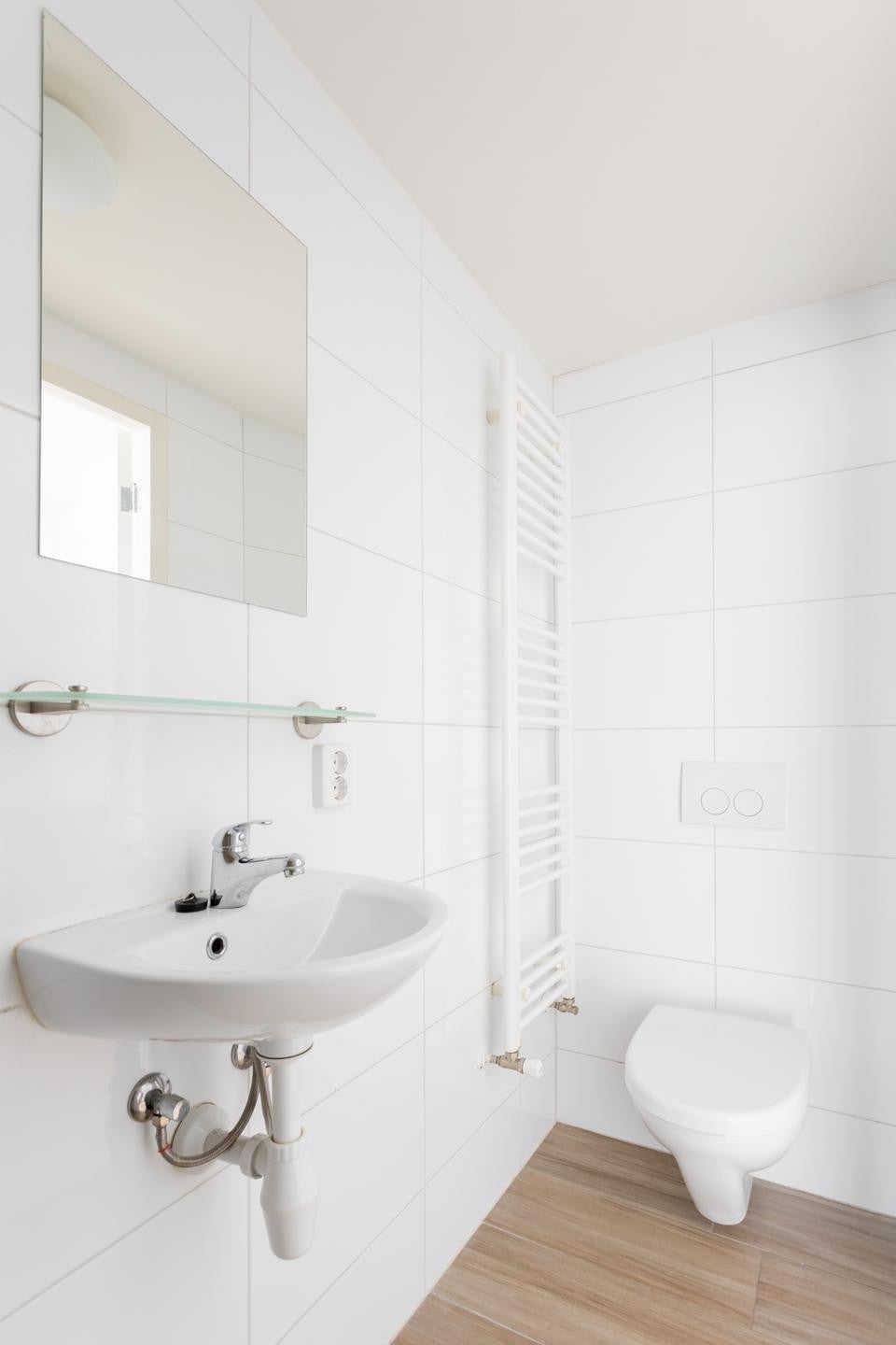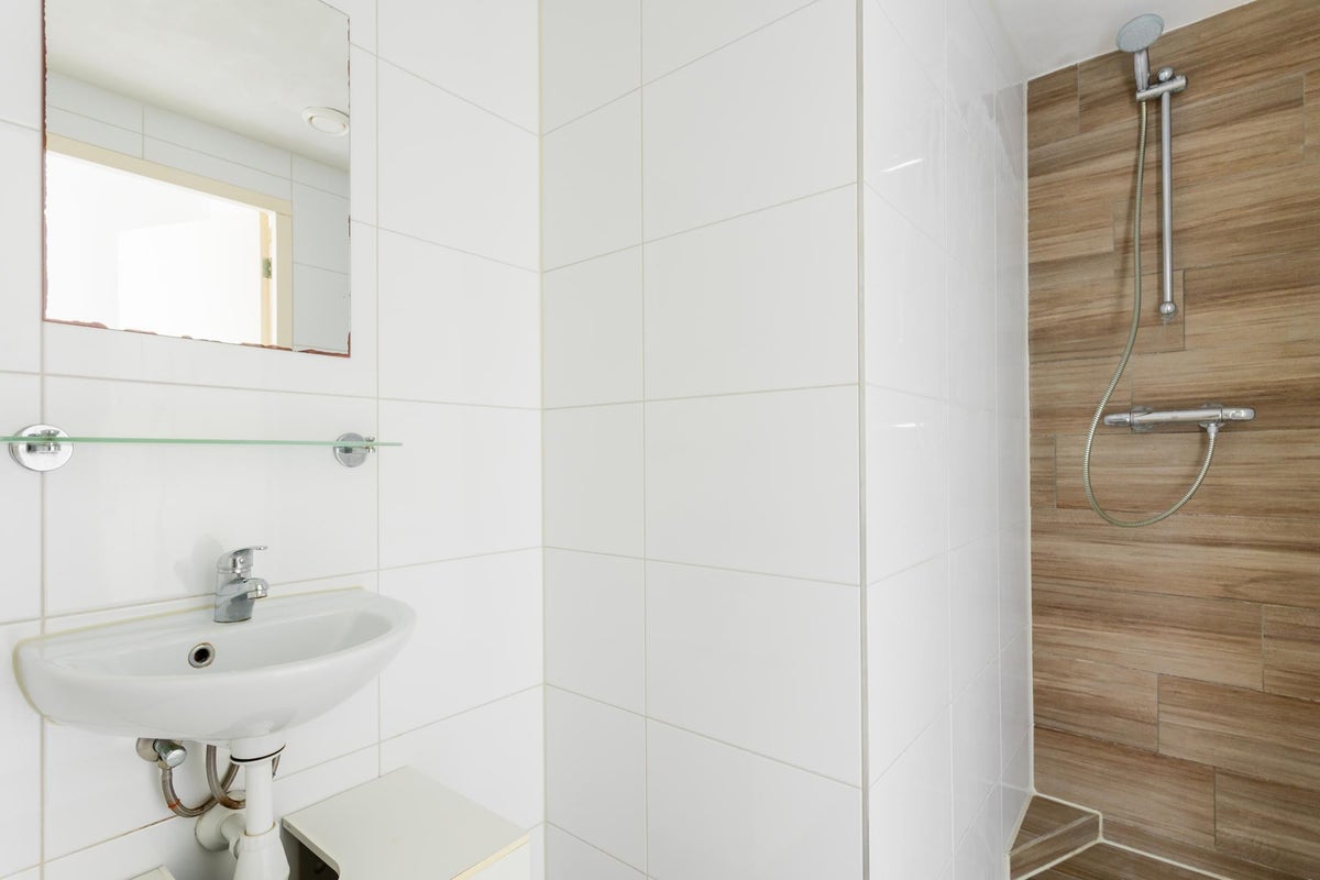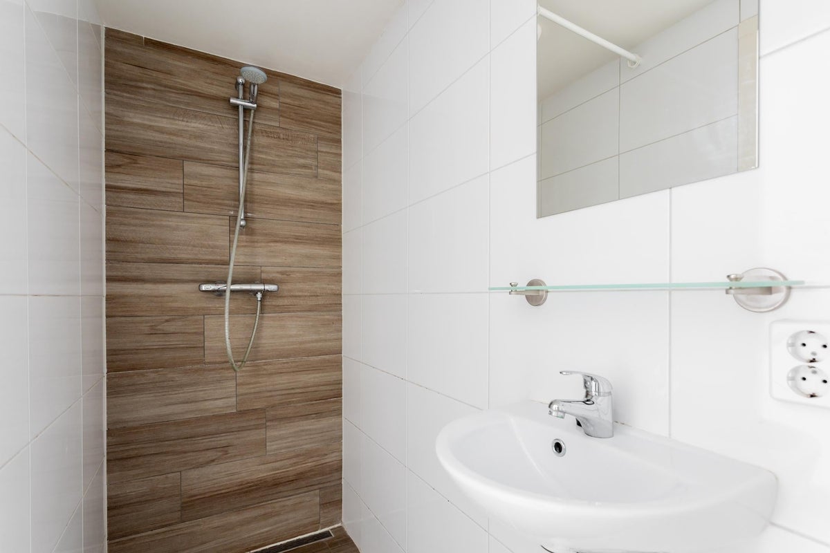 5 m²) en een nette moderne badkamer (ca. 2,5 m²), voorzien van een inloopdouche, toilet en wastafel.