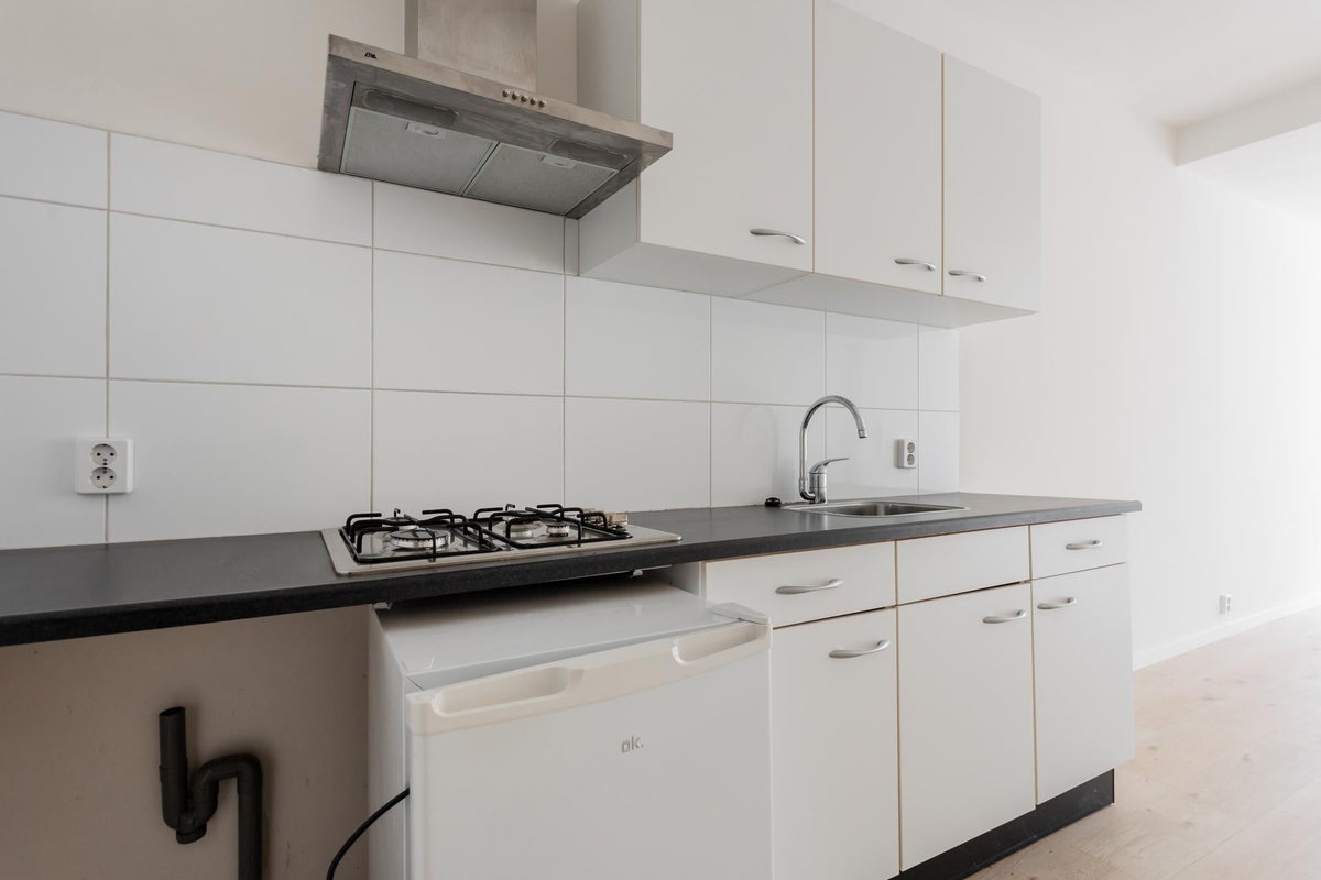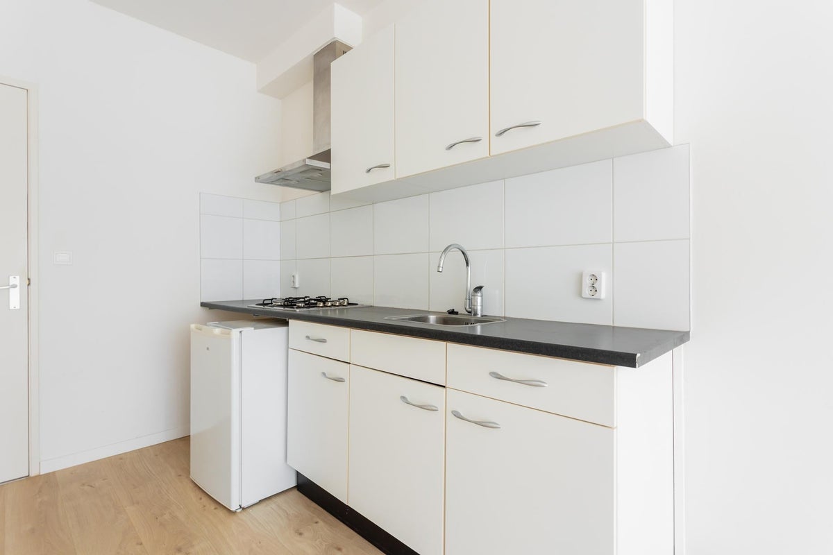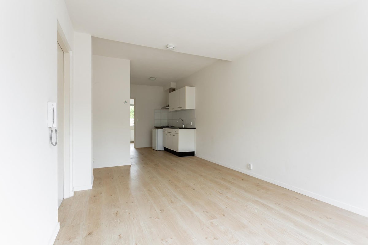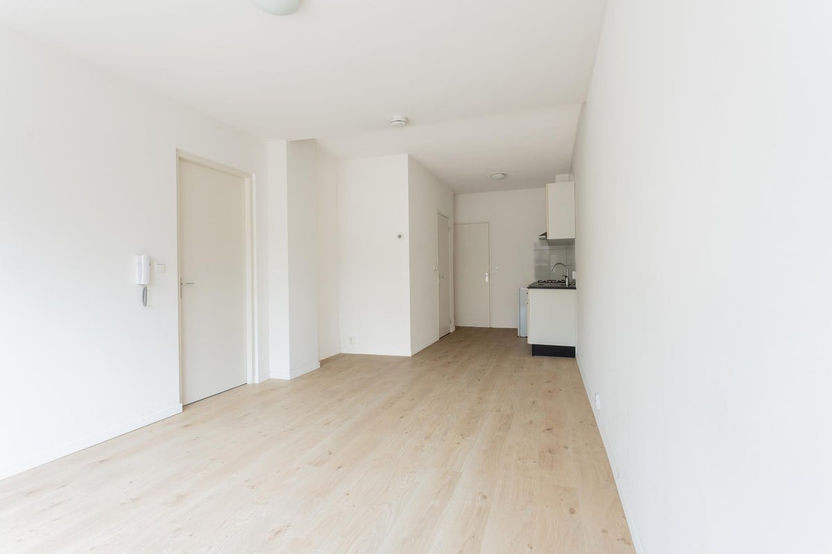 Het appartement beschikt over een lichte woonkamer met open keuken (ca. 24 m²), wat zorgt voor een ruimtelijk en open gevoel. De open keuken is praktisch ingericht en sluit goed aan op de leefruimte. Daarnaast is er een slaapkamer aanwezig (ca.
