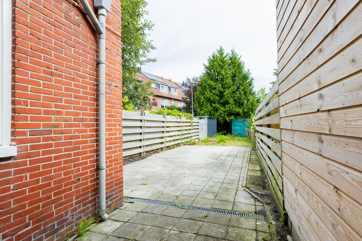 Ook is er een zeer ruime achtertuin. Deze wordt gedeeld met een ander appartement. Het appartement is gelegen in een prettige en rustige buurt, ten noorden van het Noorderplantsoen.