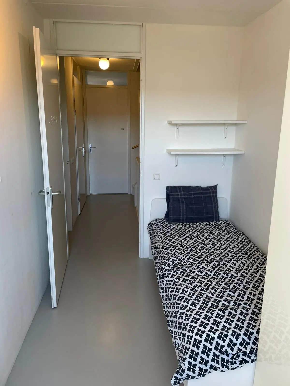 Ook is de kamer volledig gemeubileerd, wat inhoud dat de is ingericht met: - Eenpersoonsbed, incl. nieuwe beddengoed - Gordijnen - Nachtkast - Kledingkast - Tapijtje naast je bed