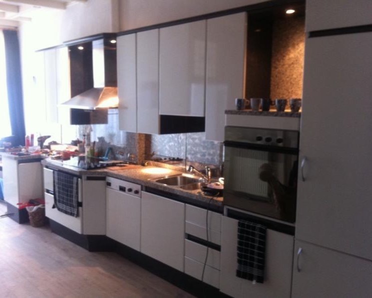 woonkamer 50 m2 met superluxe keuken ( 6 m) met inrichting en servies magnetron en oven en eerste verdieping 2 aparte grote slaapkamers van ca 15 m 2 met luxe badkamer ligbad douche en wasmachine.