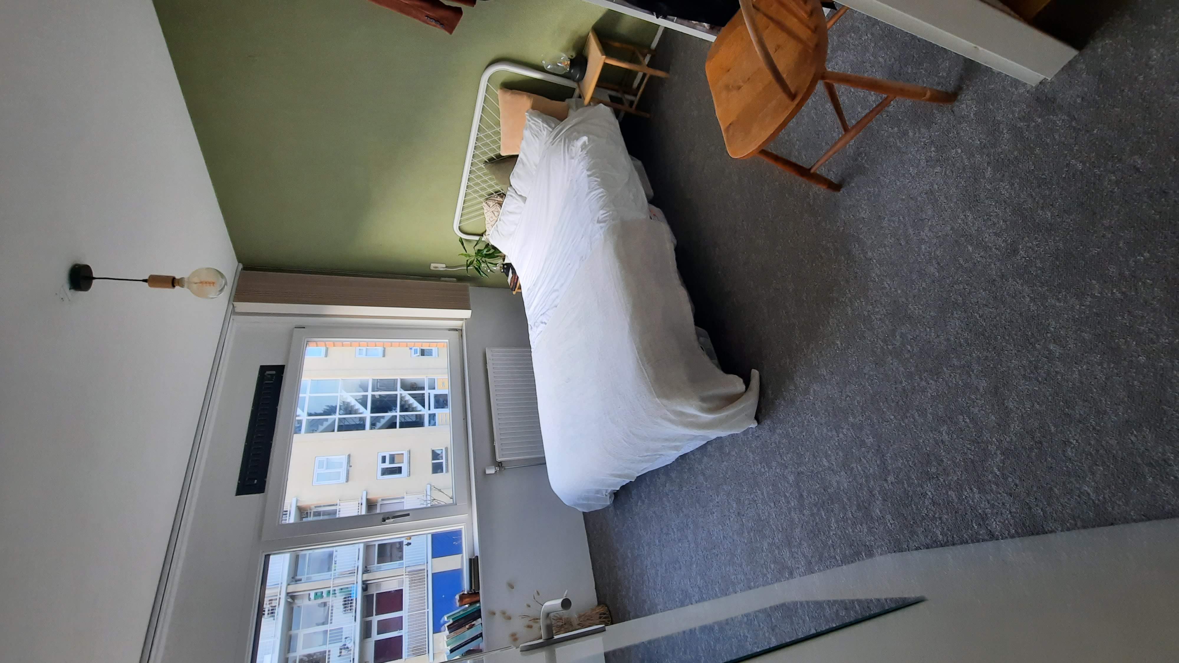 De kamer zelf is 10m2, de huur is €710 inclusief (maar exclusief gemeentelijke belastingen). De woonkamer, keuken, badkamer, tweede toilet en het dakterras deel je met mij (vrouw, 28). Het dakterras heeft de volledige dag zon, dus dat is de komende maanden echt genieten! Het huis heeft drie verdiepingen, met op de begane grond een kapstok en toilet, op de eerste verdieping een badkamer en de twee slaapkamers en op de derde verdieping vind je de woonkamer, keuken, een klein washok en het dakterras. Het ligt dichtbij het Julianapark en leuke horecatentjes, zoals de Nar en de Nijverheid.