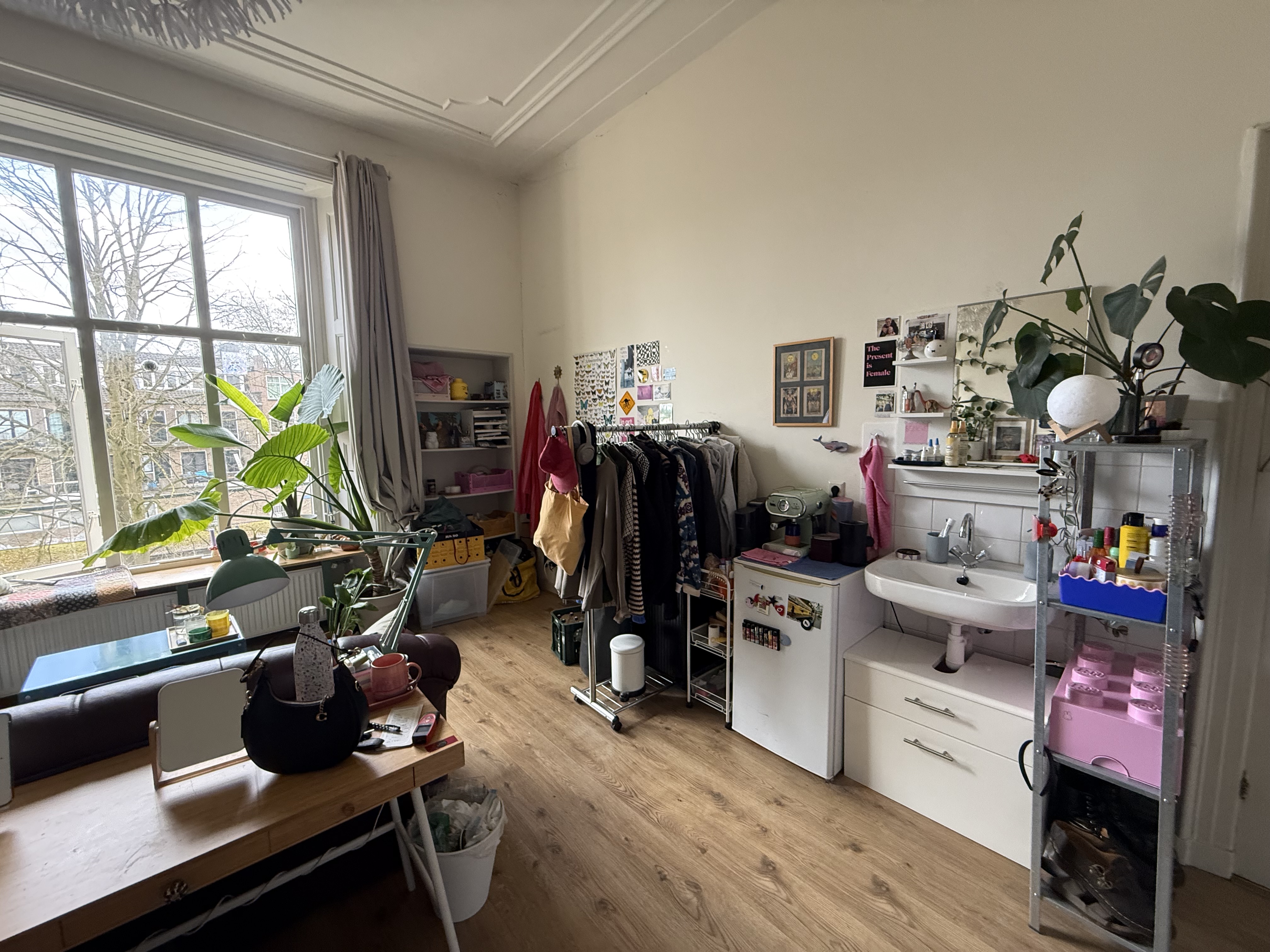 De kamer is heerlijk licht en kijkt uit over de zonnige achtertuin, wat zorgt voor een rustige en fijne sfeer. Dankzij de goede indeling is de ruimte perfect te gebruiken als woon- én slaapkamer.