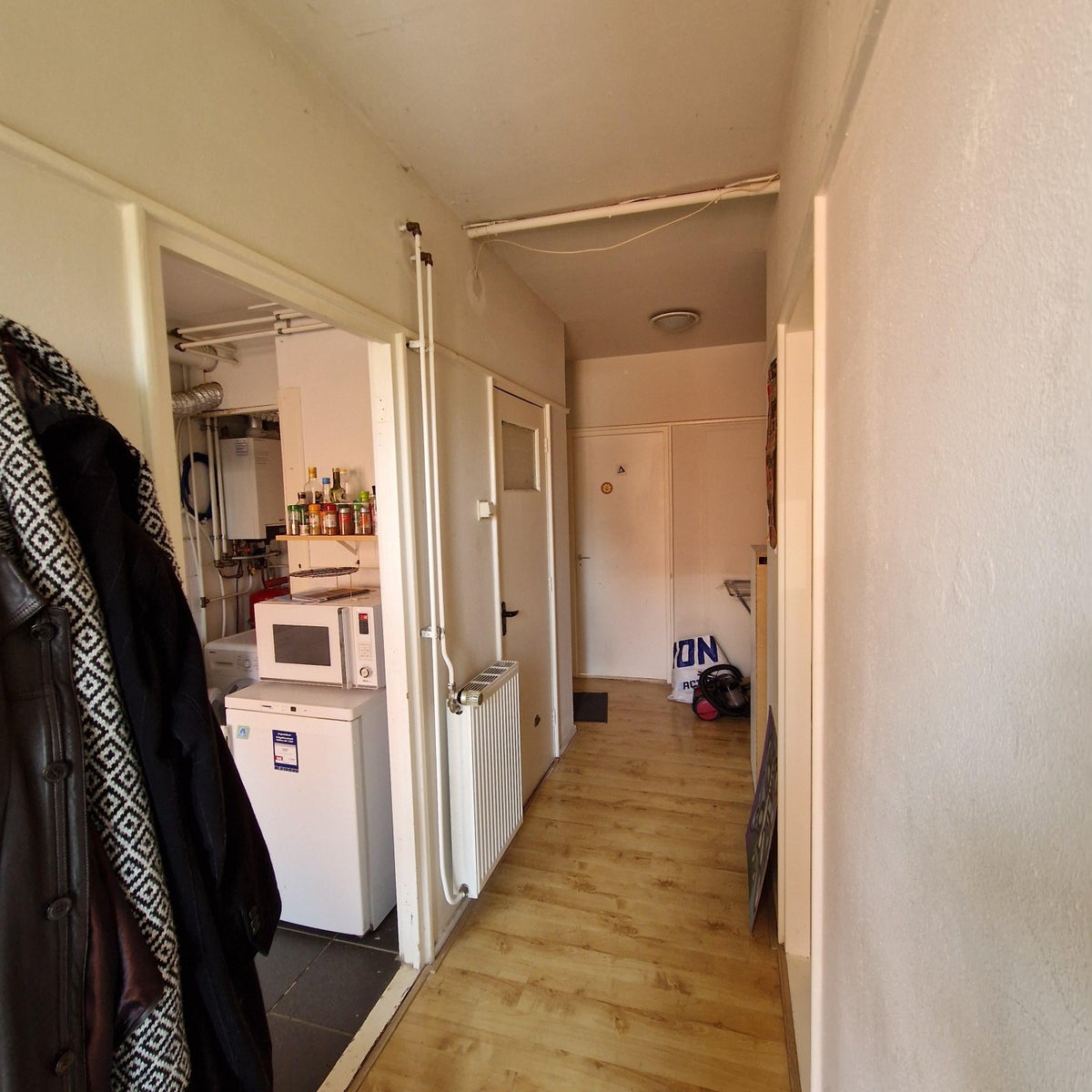 Hal met intercom, gedeelde keuken voorzien van apparatuur, gedeeld separaat toilet en gedeelde badkamer met douche en wastafel. Kamer (20m2) met eigen wastafel.