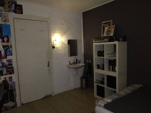 Te huur: een kamer in een eengezinswoning, gelegen op de eerste verdieping met een eigen wastafel.