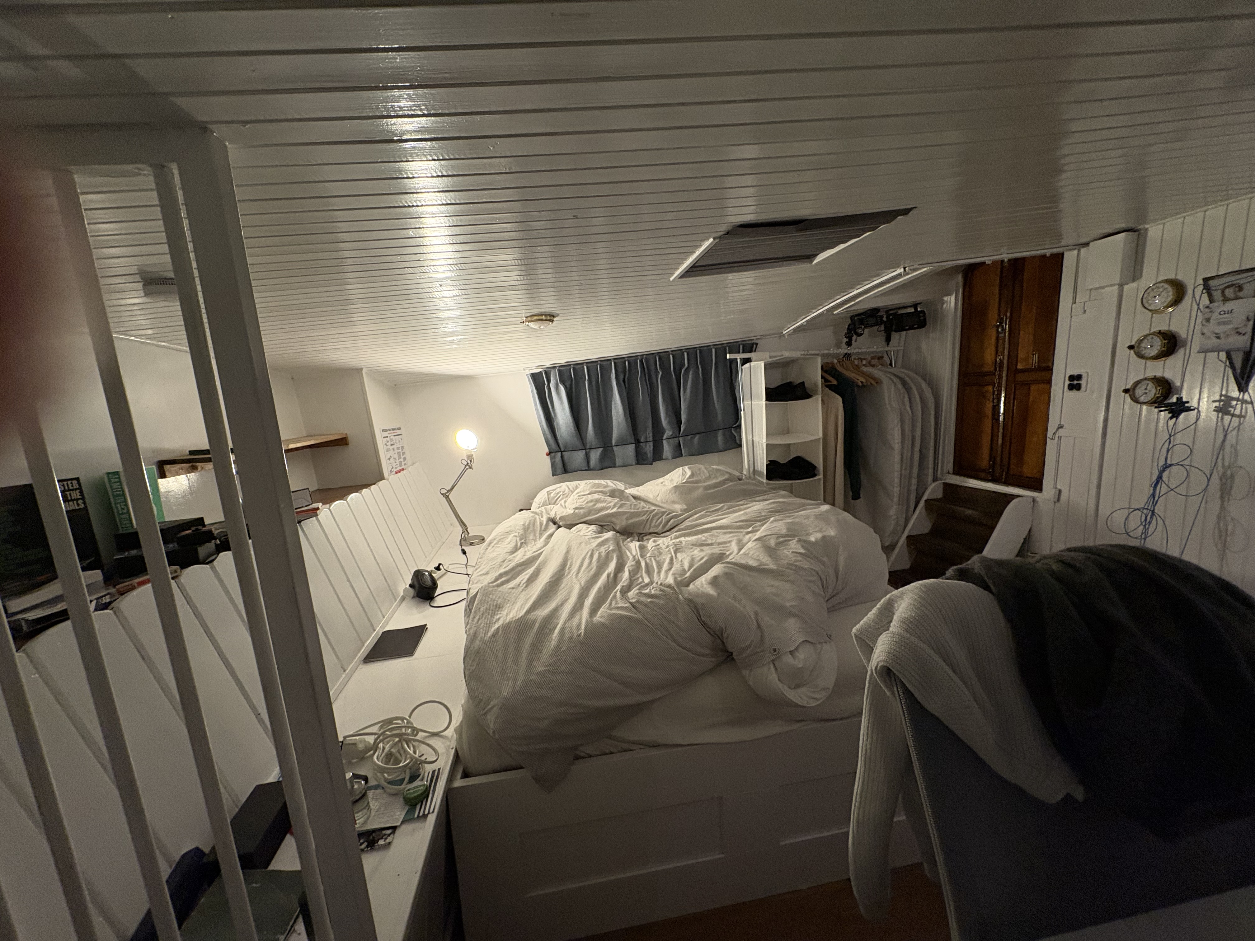 Woonboot te huur liggend aan Louis Pregerkade in Rotterdam marina, De boot is volledig uitgerust en wordt gedeeld met twee andere studenten.