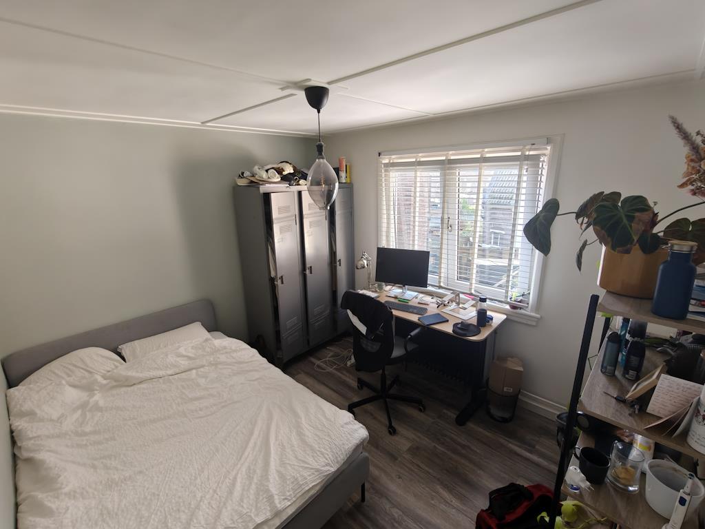 Unieke ligging aan Karnemelksloot, dichtbij centrum en 5 fietsminuten van NS station. Gemeenschappelijke woonkamer, keuken, toilet, badkamer en achtertuin.