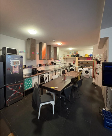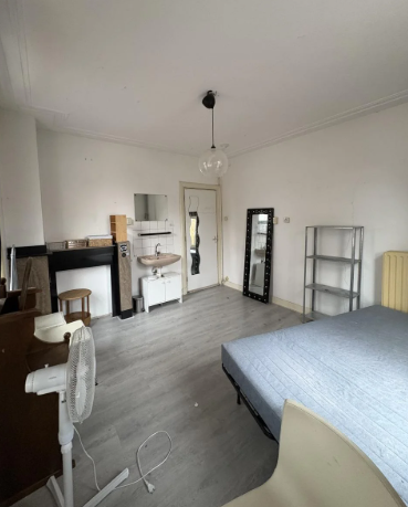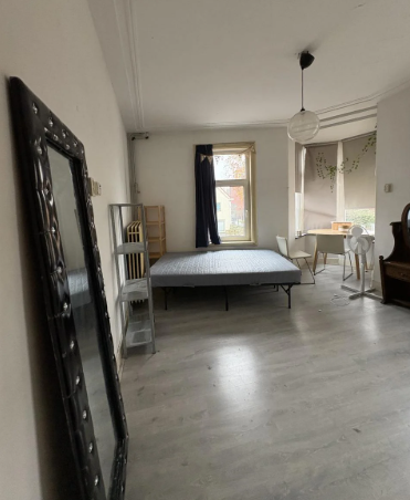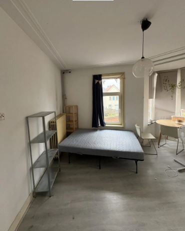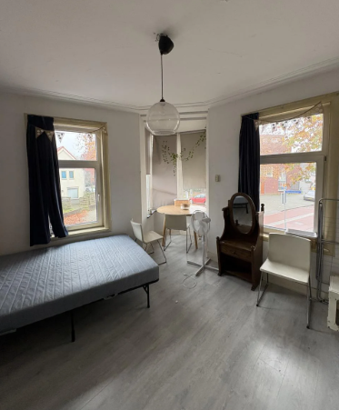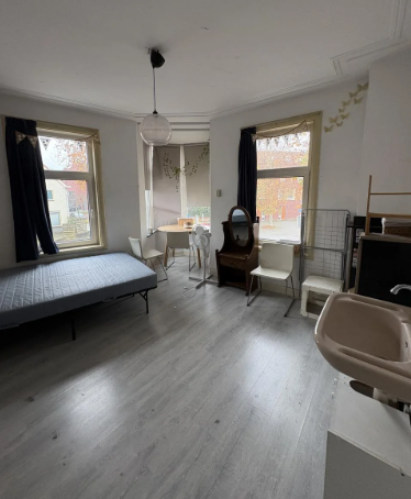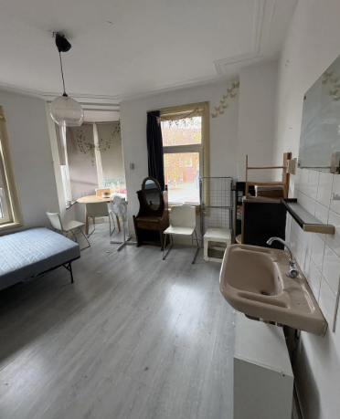 De badkamer, keuken en toilet deel je met de andere bewoners van het gebouw. Er zijn enkele meubels in de kamer aanwezig..