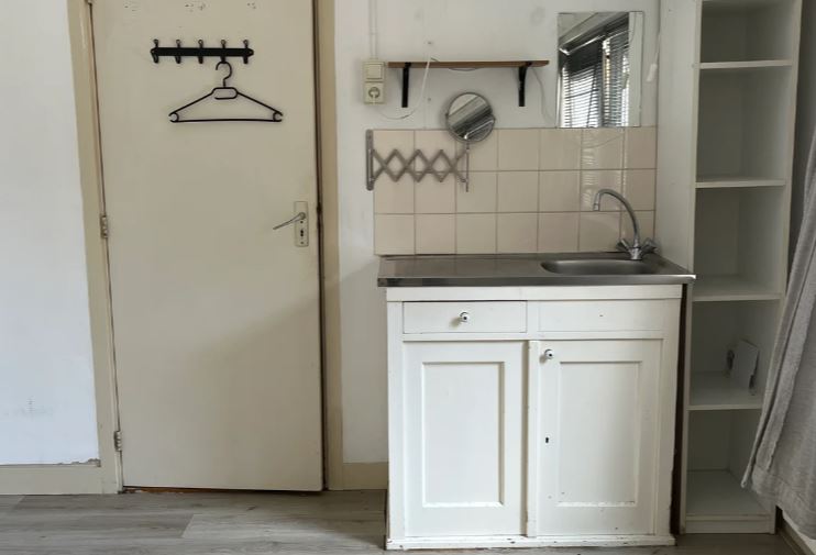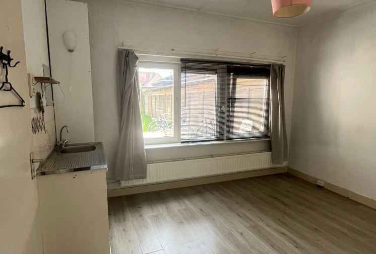 Ook is de binnenstad snel te bereiken, om de hoek is een supermarkt gelegen. de betreffende kamer is gesitueerd op de begane grond aan de voorzijde van het pand. Het beschikt over een eigen keukenblokje. De voorzieningen zoals keuken, douche en toilet worden gedeeld met de 5 andere medebewoners.