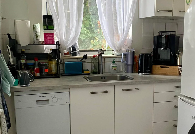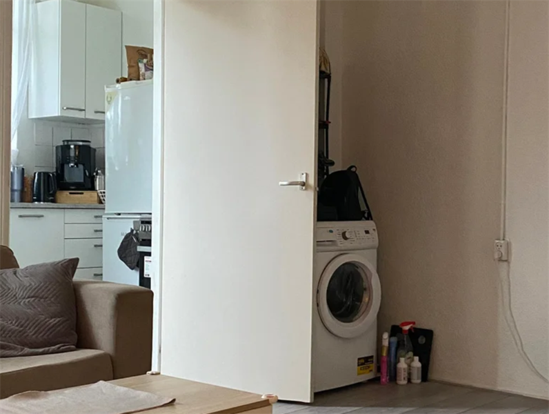 1e verdieping: Woonkamer 4,76 x 5,12m (voorzien van wasmachine), slaapkamer 2,8 x 2,72m, keuken 1,94 x 2,08m en de badkamer 2,3 x 0,83m (voorzien van een douche en een toilet)Huurprijs: € 985,- incl. G/W/E.