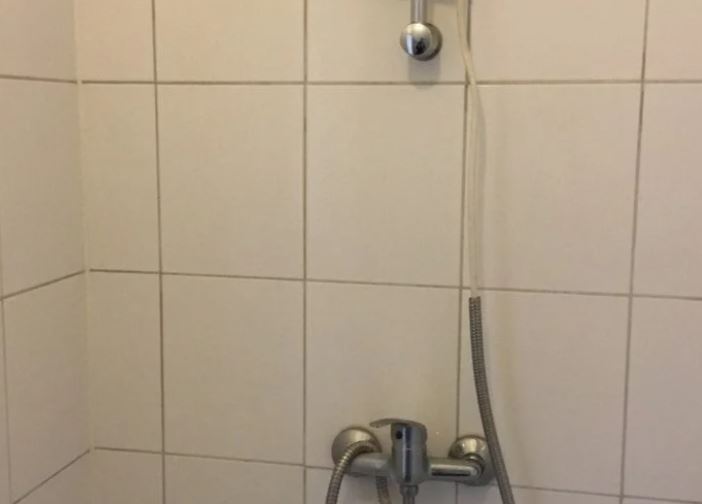 De badkamer is voorzien van een douche, wastafel en toilet..