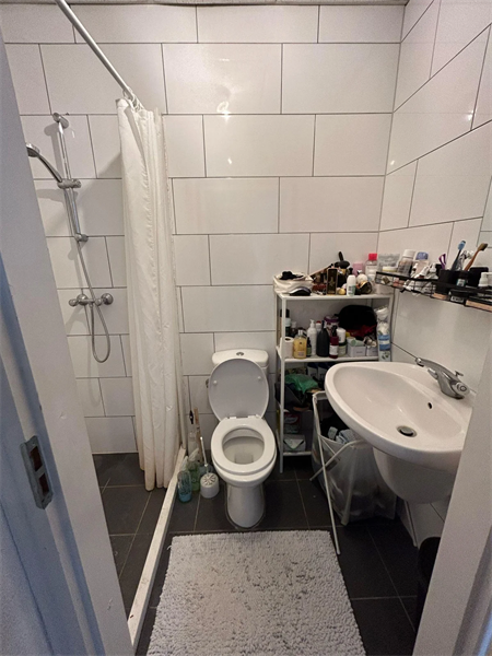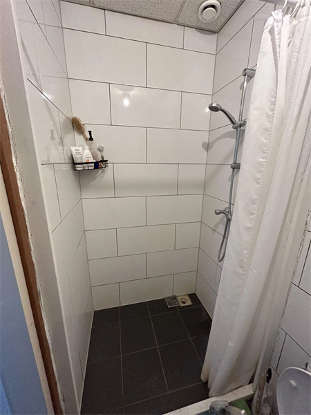 Aan het einde van de slaapkamer bevind zich de badkamer, welke is voorzien van een douche, wastafel en toilet..