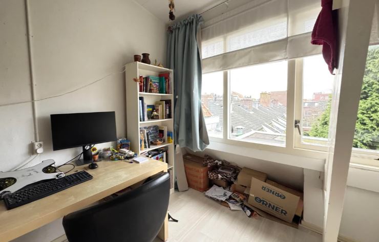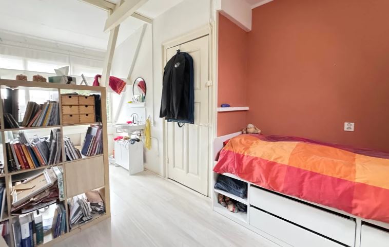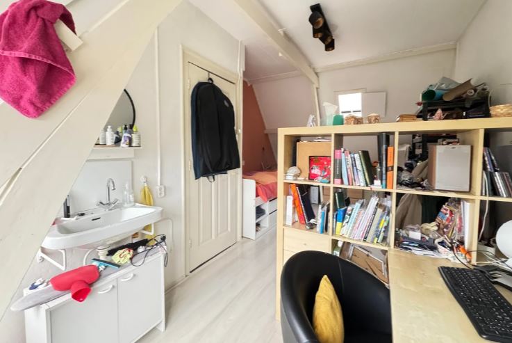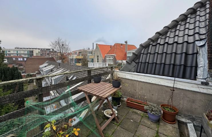 Op dezelfde etage bevindt zich de ruime slaapkamer, voorzien van een eigen wastafel. Dankzij de indeling en het daglicht voelt deze verdieping open en comfortabel aan. Buitenruimte Het dakterras biedt een prettige buitenplek met uitzicht over de omgeving - ideaal voor een kop koffie of een zomerse avond. Ligging De woning ligt aan de levendige Haarlemmerstraat, met winkels, horeca en openbaar vervoer op loopafstand.