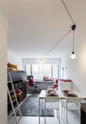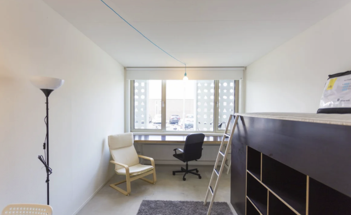 Het betreft een zelfstandige studentenkamer op de begane grond. De studio is deels gemeubileerd en zijn voorzien van: Een laminaatvloer; Een rolgordijn, een groot bureau en een hoogslaper (exclusief matras) met veel opbergruimte; Een keukenblok met 2 pits elektrische kookplaat, een afzuigkap, een spoelbak en een koelkast met vriesvak; Een badkamer met douche, toilet en wastafel. Dit is een zelfstandige studentenkamer op de 1e verdieping Alleen een student komt in aanmerking voor deze kamer.