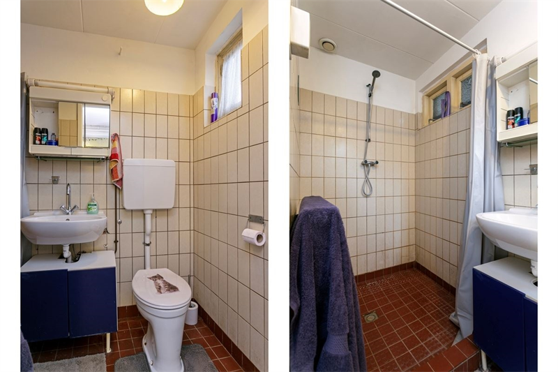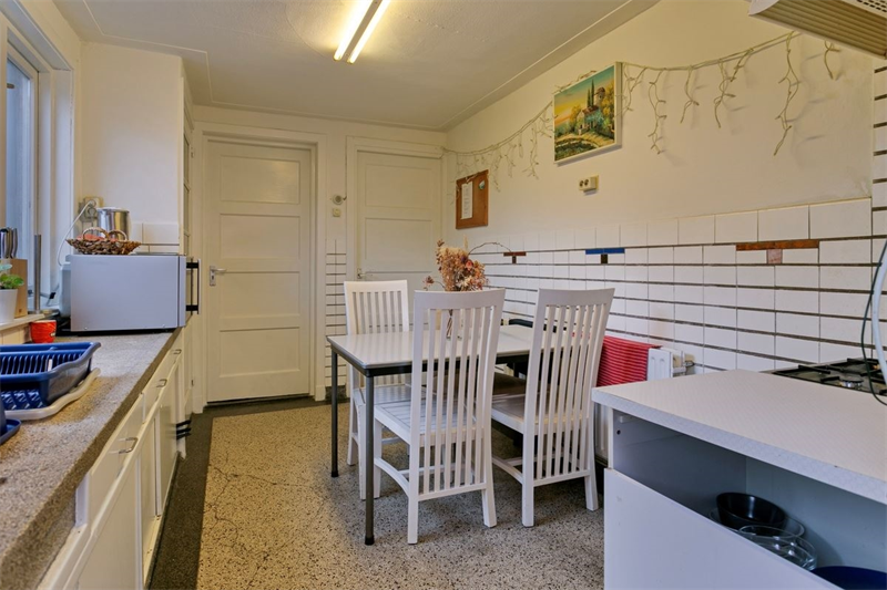 Aan de voorzijde is er een gezamenlijke woonkamer van circa 10 m². In de bijkeuken op de begane grond staan een wasmachine, droger en koel-vriescombinatie die gezamenlijk gebruikt kunnen worden. Vanuit de bijkeuken heb je directe toegang tot de achtertuin - ideaal om lekker buiten te zitten of te ontspannen. De woning deel je met vier anderen, en een luxe is dat er twee badkamers zijn.