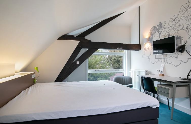 €1300,00 inclusief G/W/L, Internet/TV en gemeentelijke heffingen. Staat: Gemeubileerd Beschikbaar: 01-02-2026 voor maximaal 6 maanden Linnen moet worden aangeschaft (Prijs:€120,00 eenmalig) Op de derde etage van een voormalig eco boutique hotel is deze kamer aan de achterzijde gelegen. De studio heeft uitzicht op de stadstuin en is volledig voorzien van luxe meubels. Aansluitend bevind zich de badkamer, deze is voorzien van douche, zwevend toilet en wastafel met meubel.