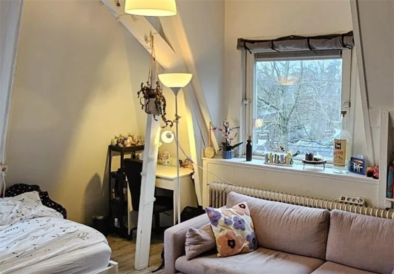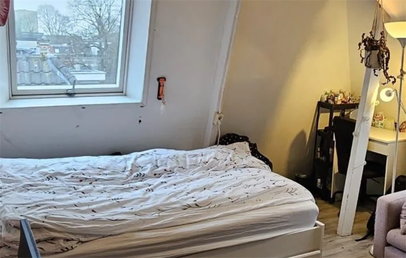 De kamer bevindt zich op de 3e verdieping aan de achterzijde van de woning en heeft een totale vloeroppervlakte van 28m2. Tevens is de kamer voorzien van een laminaatvloer en heeft de kamer een inbouwkast. Het pand heeft in totaal 8 kamers, er is een grote gemeenschappelijke tuin, twee gemeenschappelijke douches en 3 toiletten. Internet en de wasmachine zijn aanwezig, dit wordt door de bewoners zelf geregeld en is het enige wat bovenop de huurprijs komt van 731 euro inclusief.