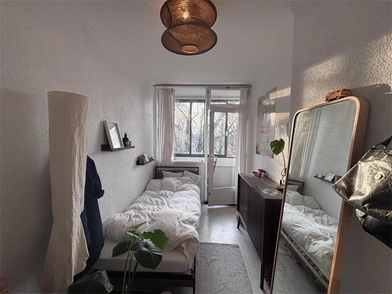 Eén van de vier kamers liggen op de begane grond. Eerste verdieping appartement: Via het trappenhuis kom je op de eerste verdieping van het appartement. Hier bevinden zich drie van vier kamer, waaronder de beschikbare kamer. Via de beschikbare kamer is er toegang tot het balkon, dat gedeeld wordt met één andere huisgenoot.