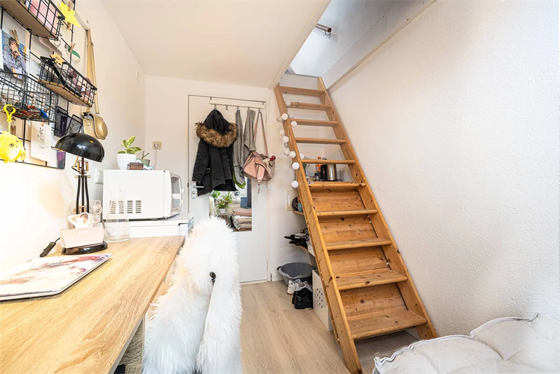 De woonruimte bestaat uit twee identieke kamers die samen als één geheel worden verhuurd. Elke kamer is verdeeld over twee verdiepingen: beneden vind je een fijne studie- en/of leefruimte, boven een afgescheiden slaapvide. Samen bieden de kamers een totale oppervlakte van ca. 30 m².