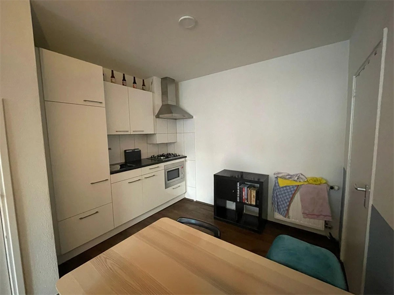 Parkeren kan in de wijk met een vergunning welke direct te verkrijgen is bij de gemeente. Indeling: Eigen entree met toegang tot de woonkamer met sfeervolle houten vloer. De open keuken is voorzien van een koelkast, combimagnetron, gasfornuis en afzuigkap. Nette badkamer met douche, wastafel en toilet.