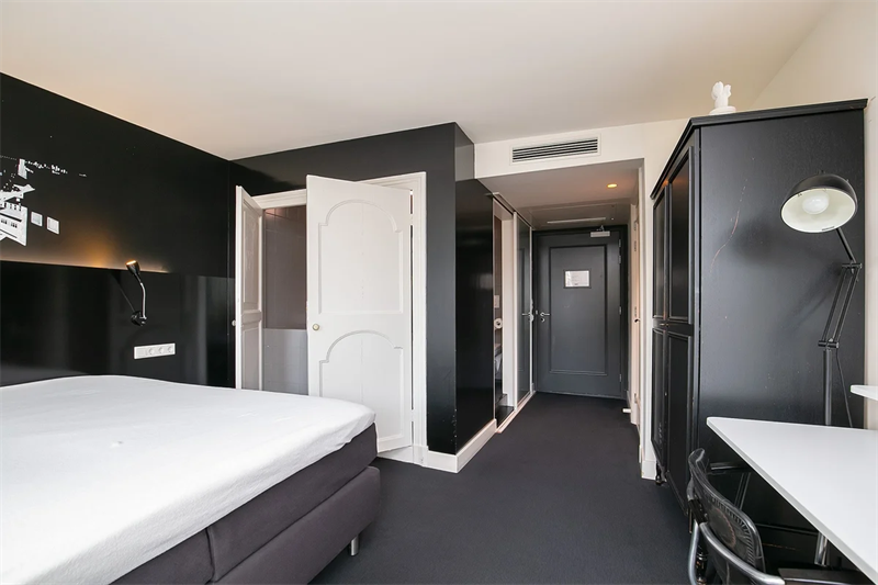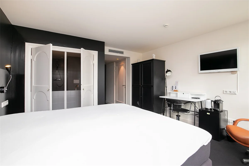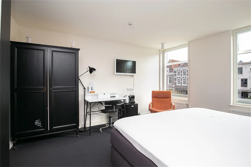 Aan de gracht gelegen Luxe inrichting Stadstuin van ruim 80m2 De Woning: Op de tweede etage van een voormalig eco boutique hotel is deze kamer aan de voorzijde gelegen. De studio heeft uitzicht op de grachten en is volledig voorzien van luxe meubels met openslaande deuren naar de badkamer.