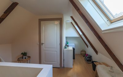 Je bereikt de woning via een vaste trap naar de eerste verdieping. Hier bevindt zich de sfeervolle woonkamer met open keuken, voorzien van veel kastruimte, ingebouwde afzuigkap en een 4-pits gaskookplaat. Ook vind je hier een separaat toilet en de trapopgang naar de tweede verdieping. Op de tweede verdieping bevindt zich de slaapkamer met wasmachineaansluiting en de nette badkamer, voorzien van zowel een bad als een douche.