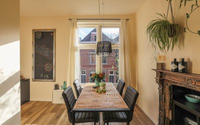 Via een aparte ingang heb je toegang tot je eigen afsluitbare binnenplaats - ideaal voor het stallen van fietsen of om even buiten te zitten.Kenmerken: • Karakteristieke bovenwoning verdeeld over twee etages • Gelegen op een hoek, met veel lichtinval • Open keuken met inbouwapparatuur • Badkamer met bad én douche Diversen: • Huurprijs: € 900,00 per maand kale huur • Waarborgsom: gelijk aan één maand huur • Per direct beschikbaar Interesse? Heb je interesse in deze sfeervolle woning? Verstuur je berciht..