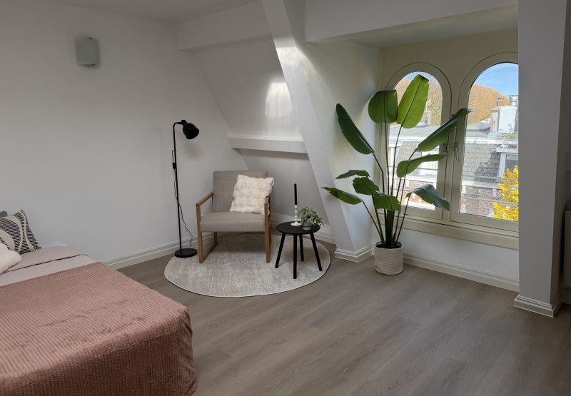 De studio is voorzien van: Ruime woonkamer of slaapkamer Dichte keukenruimte Badkamer voorzien douche, toilet en vaste wastafel Hal De totale huurprijs van de woonruimte bedraagt € 1150,- inclusief G/W/L en servicekosten. Verhuurperiode: bepaalde tijd van max. 12 maanden. Registratie op het adres is mogelijk.