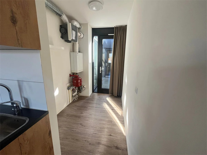Volledig gestoffeerd een voorzien van alle gemakken - perfect voor wie comfortabel en centraal wil wonen! Indeling: Via een gezamenlijke entree bereik je de studio op de eerste verdieping. Je komt binnen in een halletje dat toegang biedt tot de nette badkamer met douche, toilet, wastafel en aansluiting voor de wasmachine. De leefruimte is slim ingedeeld en combineert wonen, slapen en koken in één open en lichte ruimte. De keuken is voorzien van een compact keukenblok met koelkast, afzuigkap en kookplaat.