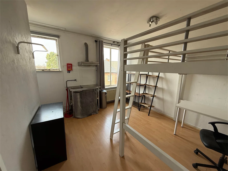 Deze kamer is onderdeel van een studentenhuis. De badkamer en toilet zijn gedeeld met andere bewoners. Iedere kamer heeft zijn eigen keukenblokje. Aan de achterzijde van het gebouw is een groot dakterras voor gemeenschappelijk gebruik.