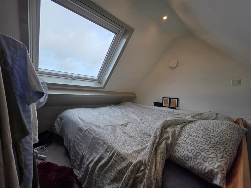 Hierin past een 2-persoonsbed. De badkamer bevindt zich naast de keuken en is voorzien van een ruime douche met wastafel. Het toilet wordt gedeeld met in totaal 4 personen.De huurprijs bedraagt €925,00 per maand. Dit is inclusief een voorschot voor gas, water, elektra en gemeentelijke heffingen.
