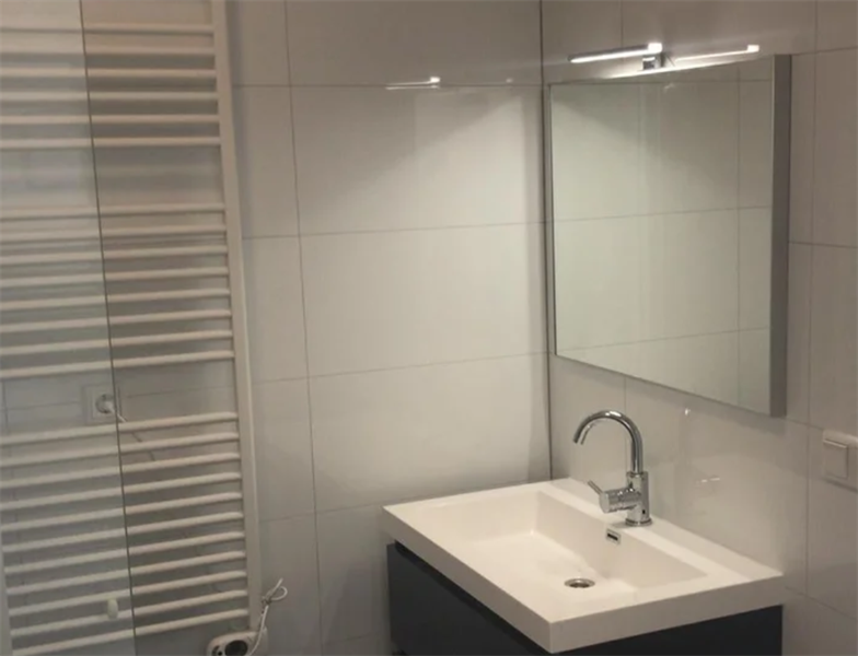De woning beschikt over een ruime woonkamer met een open keuken. De keuken is voorzien van inbouwapparatuur (kookplaat, afzuigkap, vaatwasser en koelkast met combi oven/magnetron). De badkamer is voorzien van een inloopdouche, wastafel met meubel, spiegel, thermostaatkraan met glijstang, design radiator en hangtoilet. Buiten de kamer om is het appartement gedeeld met 5 andere huurders.