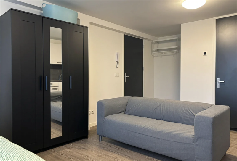 De studio is volledig gemeubileerd en is voorzien van 1-persoonsbed, kledingkast, bank met salontafel, TV meubel met flat screen TV, lamp en eettafel met 2 stoelen. De open en moderne keuken is betegeld en voorzien van inductie kookplaat en afzuigkap, inbouwkoelkast met vriesvak, combi oven en diverse opbergmogelijkheden. Badkamer met douchecabine, wastafel met spiegel en toilet. Belangrijke kenmerken van de studio; - Volledig gerenoveerd, gemeubileerd en zelfstandig - Uitstekende locatie t.
