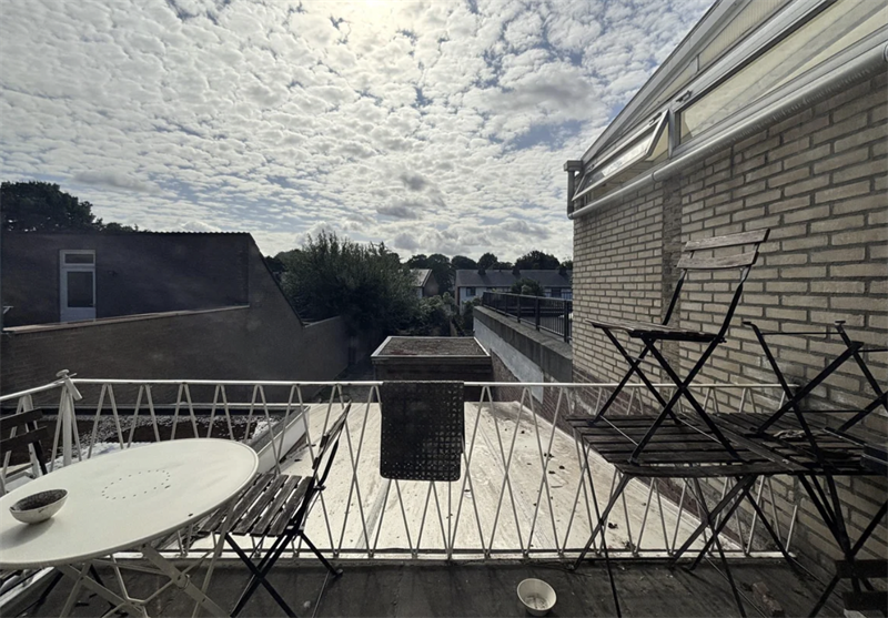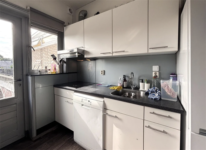 Daarnaast bevindt zich hier de gedeelde keuken, voorzien van een afzuigkap, een 4-pits inductie kookplaat, een koelkast, een vriezer en een vaatwasser. Ook heb je hier toegang tot een fijn balkon, perfect om even buiten te zitten. Daarnaast zijn er op deze verdieping twee slaapkamers. Tweede verdieping: De kamer die beschikbaar is, bevindt zich op de tweede verdieping.