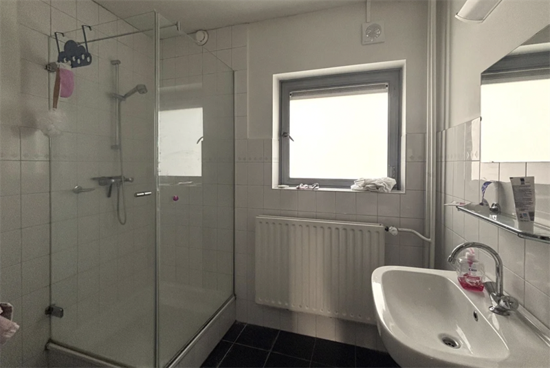 Beschikbaar voor één student. Indeling: Begane grond: De woning is verdeeld over twee verdiepingen. Bij binnenkomst op de begane grond kom je terecht in een gemeenschappelijk trappenhuis dat toegang geeft tot de bovenliggende verdiepingen. Eerste verdieping: Op de eerste verdieping bevinden zich een apart toilet en de badkamer met een ruime inloopdouche en wastafel.