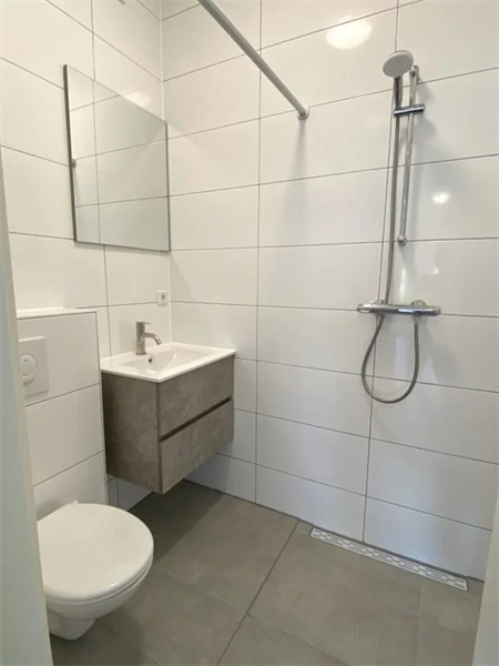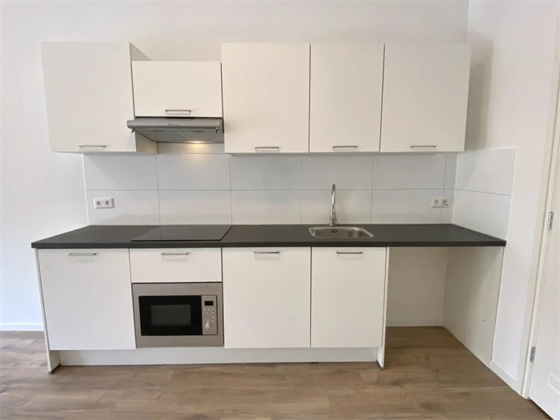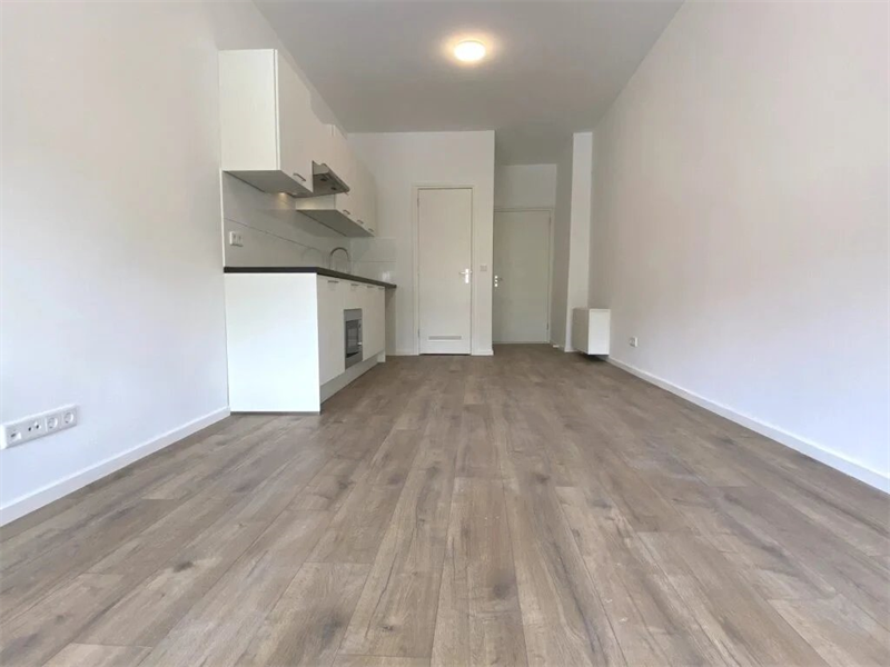 De studio beschikt over een lichte woon- en slaapkamer met open keuken. De keuken is voorzien van alle gemakken, zoals een oven, inductiekookplaat, vaatwasser en koelkast. Verder is er een badkamer met douche, toilet, wastafel en wasmachineaansluiting aanwezig..