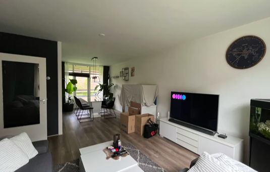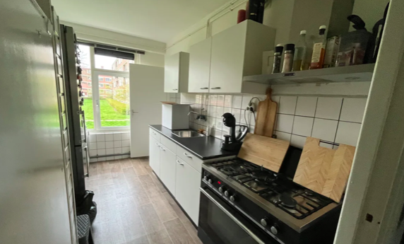 Het portiek geeft toegang tot de brievenbus en een verdieping lager; de berging. Met de trap (geen lift aanwezig) bereikt u de entree op de 3e verdieping. De entree geeft toegang tot de meterkast, de woonkamer, slaapkamers, en separaat toilet, de keuken grenst aan de achterzijde van het appartement. Via de keuken, tevens gesitueerd aan de achterzijde kom je bij de badkamer.Huurvoorwaarden Huurprijs €898,56 exclusief g/w/e per maand.