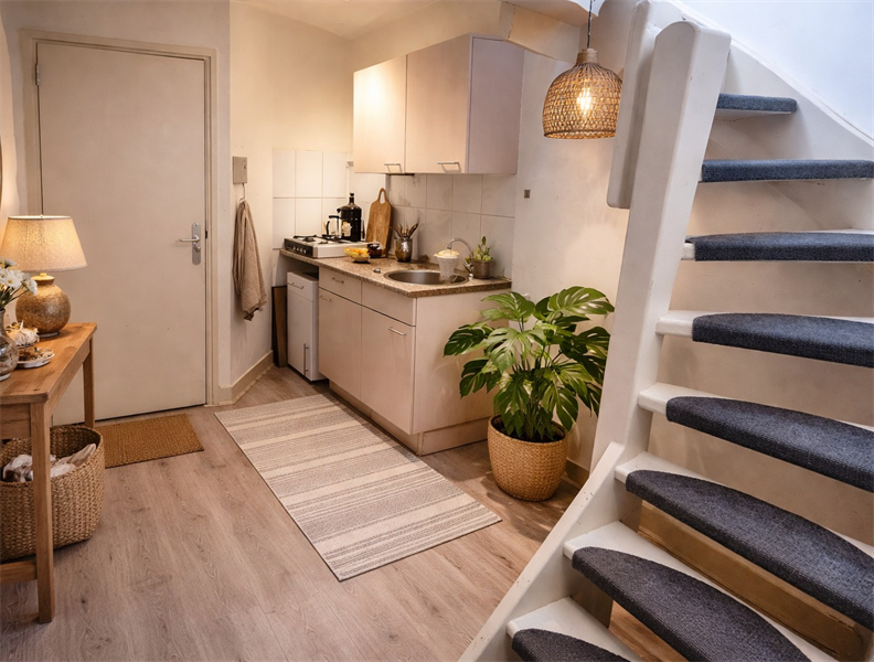 Daglichtinval via lichtkoepels! Indeling van het appartement: Binnenkomst in keukenruimte Woonkamer Slaapkamer Ruime badkamer voorzien van ligbad, dubbele wastafel, toilet en aansluiting voor de wasmachine.