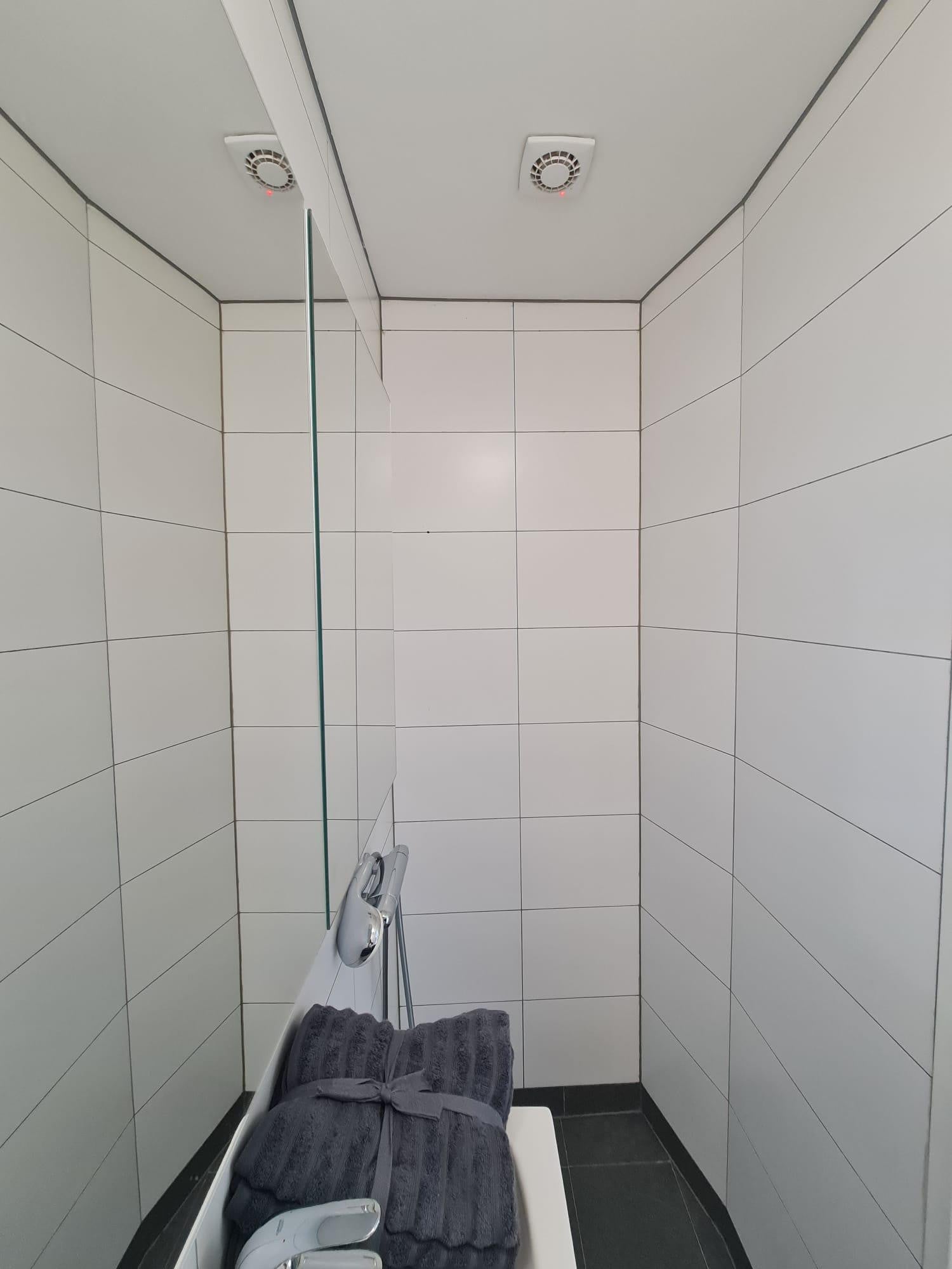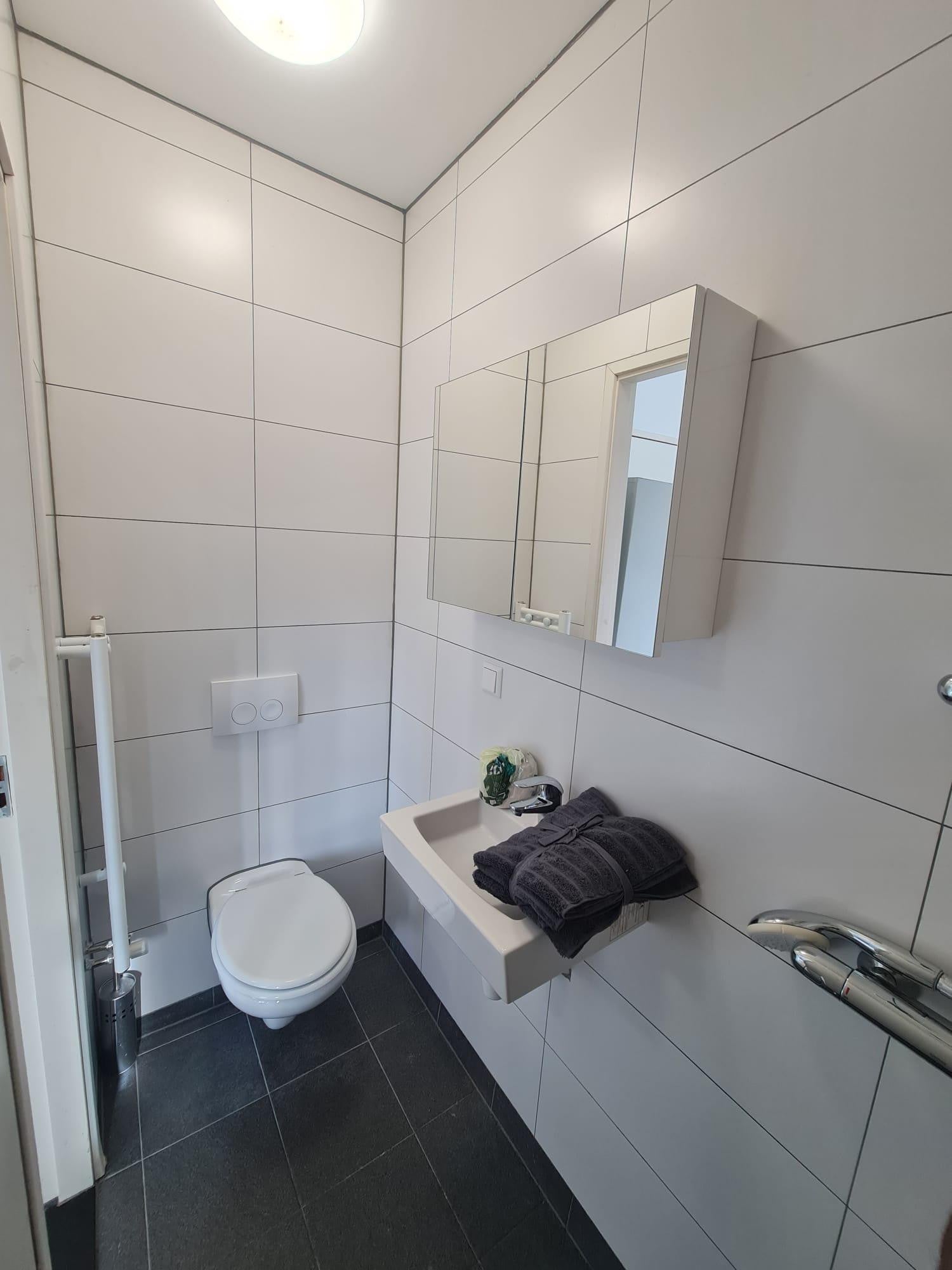 Beschikt over een badkamer die is voorzien van een toilet, douche en wastafel
