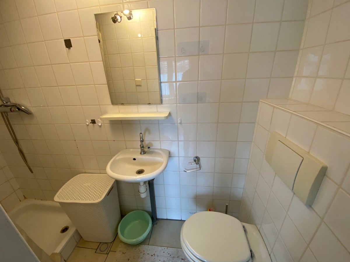 Deze studio is voorzien van eigen douche, toilet en wastafel.